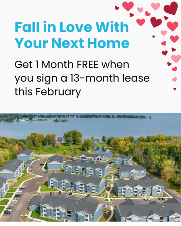 This February, we’re giving you 1 Month FREE when you sign a 13-month lease at LoSo Lakeside Apartments.